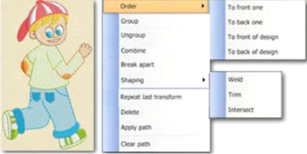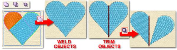Create any shape you can think of inside the Create tab by Welding, Trimming or Intersecting objects with a single click of the mouse. These tools can also help you edit your designs by welding many smaller objects to one larger and remove unnecessary stitches under overlapping objects.