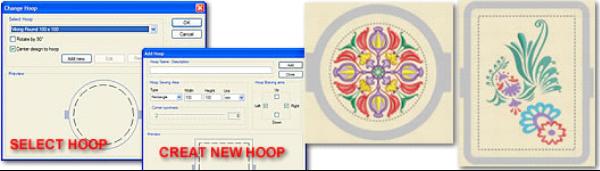 A complete list of hoops is now included to help you confirm in advance whether the design you are creating can fit inside a certain hoop that you plan to use. You can also create and use custom hoops based on your machine's accessories.