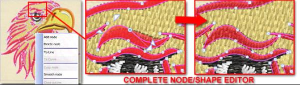 A complete and powerful Node/Shape editor has been included in the Create tab of DRAWings 4. With the Node editor you can easily reshape any object of your design and view how these changes affect the embroidery, instantly.
