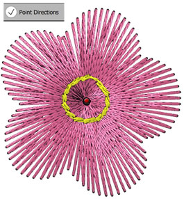 Objects that are filled with Piping stitch type can be easily converted into spiral fill objects. You only need a point direction or hole in the middle of the design and your spiral is ready. You can even apply styles on the spiral stitches and get beautiful embroidery results. |