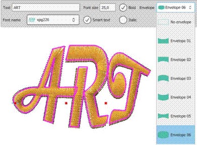 The ability to place text in an envelope added for all newly inserted lettering objects. There are many envelopes to choose from and you can adjust them further in the "edit nodes" mode. |