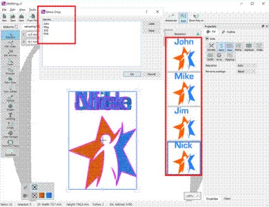 Name drop is the easiest way to create multiple designs with different names. Create the designs you want to apply the “Name drop”, write the names that you want to be embroidered and apply it. The software will create multiple designs one over the other which their only difference will be the Text (Name) you have added in the Name Drop list. The designs can be sewn out one after the other |