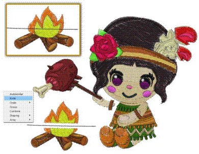 Create closed shape drawings made from stitches, inside any step, satin, Zig-Zag or Satin serial objects, living the remaining area unchanged. You can use any shape including characters. |