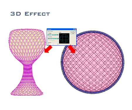 DRAWings XI Combo Professional allows you to make creative 3-D effects using styles and patterns by combining with the controllable shaping tools. It is much more flexible than any other wave type stitch effect tool. You can also combine with 24 diffident color blending patterns to obtain special 3D effects. |