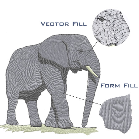 Wings Embroidery Software has been well known to not only provide our customers with high-end special digitizing tools, but also to do so in a highly-efficient manner. Unlike most other digitizing software in which you will have to go through a painful and complicated steps to create your own unique patterns and styles, vector\block\form fill tools allow you to create those special effects in a matter of minutes. Once again it proves to be the most productive commercial embroidery software on the market. |