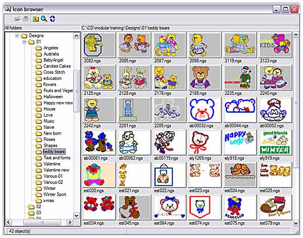 The Icon Browser works like the Windows Explorer and it is a separate window inside modular software. This allows you to load the designs you need whilst the browser stays open and you can manage it as a normal window. |